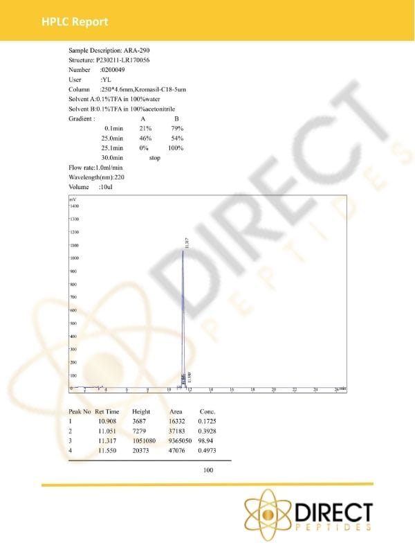 At Direct Peptides, we provide ARA-290 peptides with 99% purity. Our careful synthesis process ensures each batch meets strict quality and effectiveness standards.