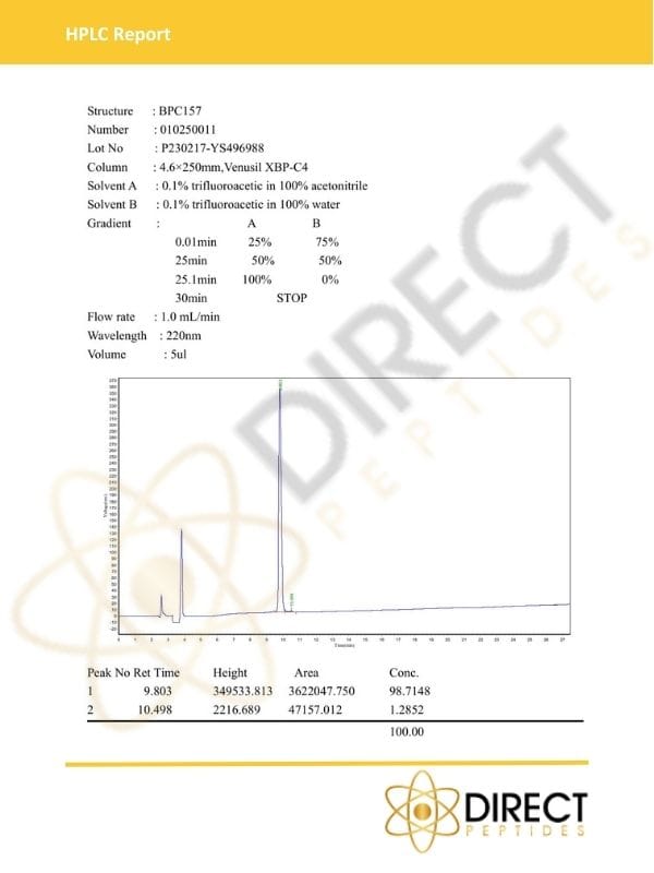 At Direct Peptides , we redefine excellence in peptide solutions, providing BPC-157 peptides guaranteed to be 99% pure. Our rigorous synthesis process is designed to ensure that each batch exceeds industry standards for quality and efficacy, reflecting our unparalleled commitment to precision and excellence.