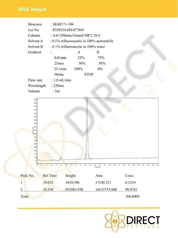 Direct Peptides offers high-quality HGH Fragment 176-191 with 99% purity, meeting strict research standards. Our peptides are produced with precision to ensure reliable and consistent results in scientific studies.