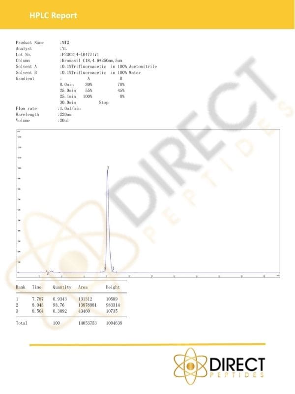 For those looking to buy Melanotan II, it is essential to consider the best source, ensuring product quality and effectiveness. Direct Peptides offers 99% purity peptides, buy Melanotan II from us today!
