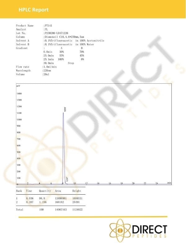 The best place to buy PT-141 with assured quality and high purity is from Direct Peptides . We offer peptides with a guaranteed purity of 99%, making us the ideal choice for researchers seeking reliable and practical solutions.