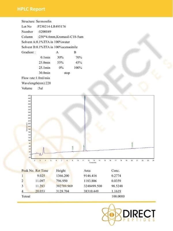 Our high purity Sermorelin products are produced to the highest quality standards and undergo rigorous third party testing to ensure their purity and effectiveness.